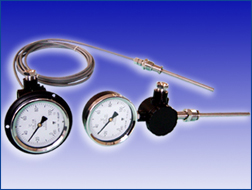型溫度計(jì)的基礎(chǔ)上發(fā)展起來的,其結(jié)構(gòu)及工作原理與壓力式溫度計(jì)完全相同,所不同的是其表頭內(nèi)充灌了油類液體,以增加傳動(dòng)部件及指針的阻尼。另外,在零部件的防松、密封及機(jī)械強(qiáng)度方面采取了一系列的加強(qiáng)措施。